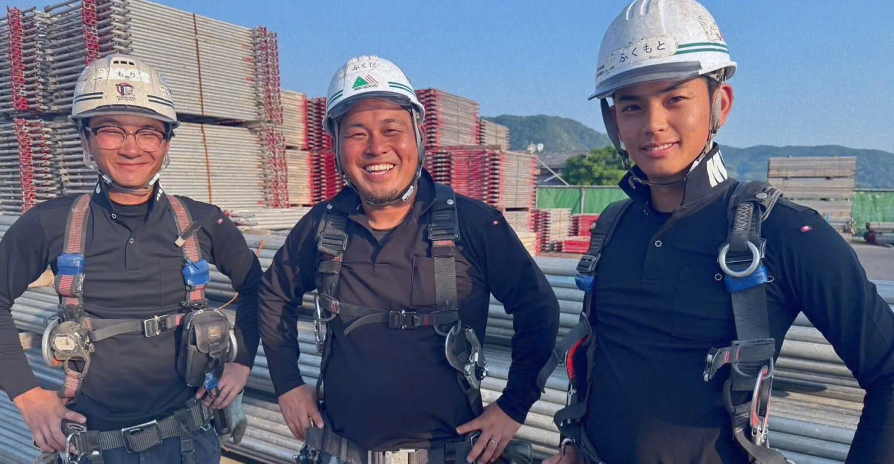 三木興業では、20代の若手から40代のベテランまで幅広い世代が活躍中!年齢に関係なく、誰もが働きやすい職場です。今いるベテラン職人たちも、最初はみんな未経験からのスタート。一生ものの技術を、ぜひ三木興業で身につけてみませんか?